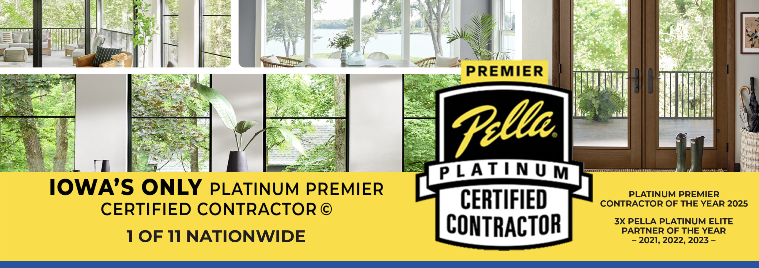 Now, with over 3,000 successful projects and 70% of our business coming from referrals, we’re excited to offer our premium window solutions to homeowners in Northeast Iowa, Cedar Rapids, and Iowa City. As Iowa’s only Platinum Premier Certified Contractor and a 3-time National Pella Platinum Elite Partner of the Year, we are dedicated to providing energy-efficient, expertly installed windows and doors that meet the highest standards of craftsmanship and care.
